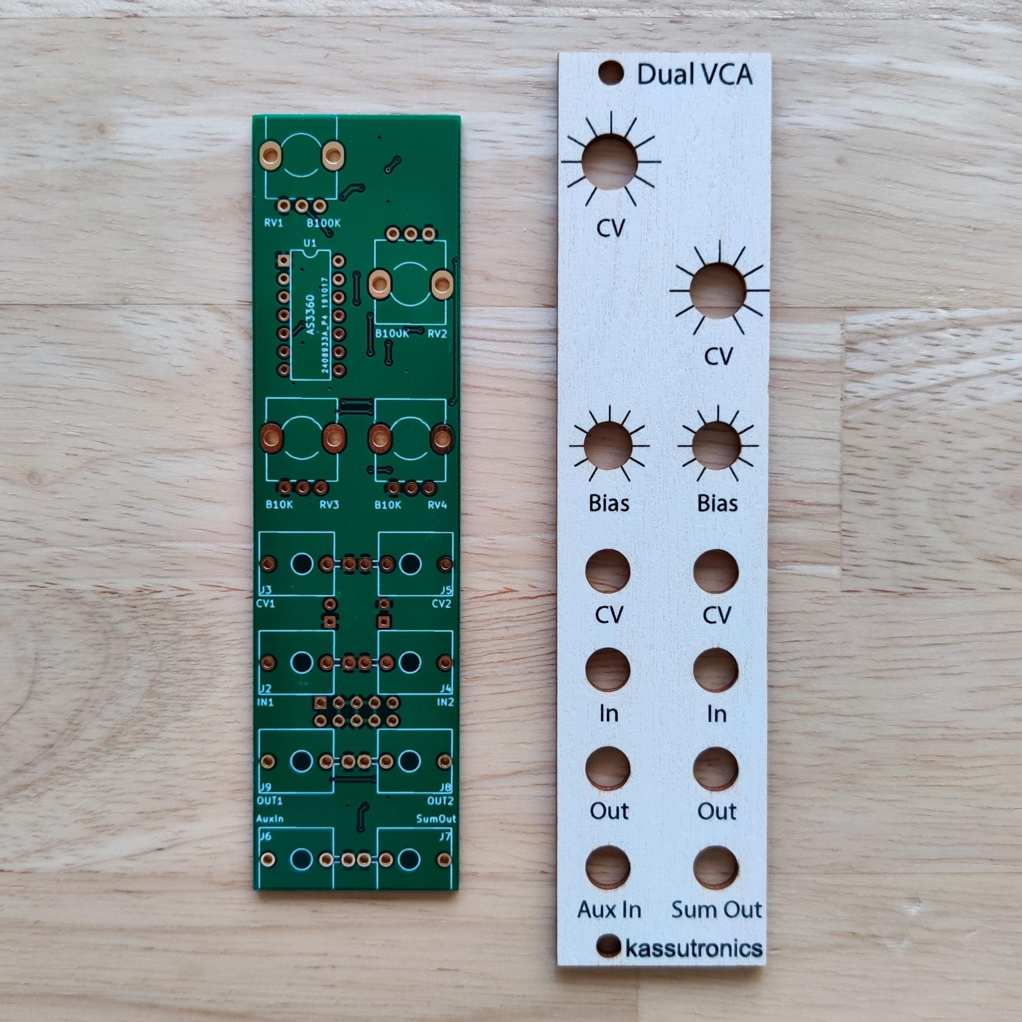 The module is built around the AS3360 dual VCA chip, a clone of the CEM3360. This chip is easy to implement, reasonably priced and has decent performance. The rest of the circuit is implemented with 0805 SMD parts.
