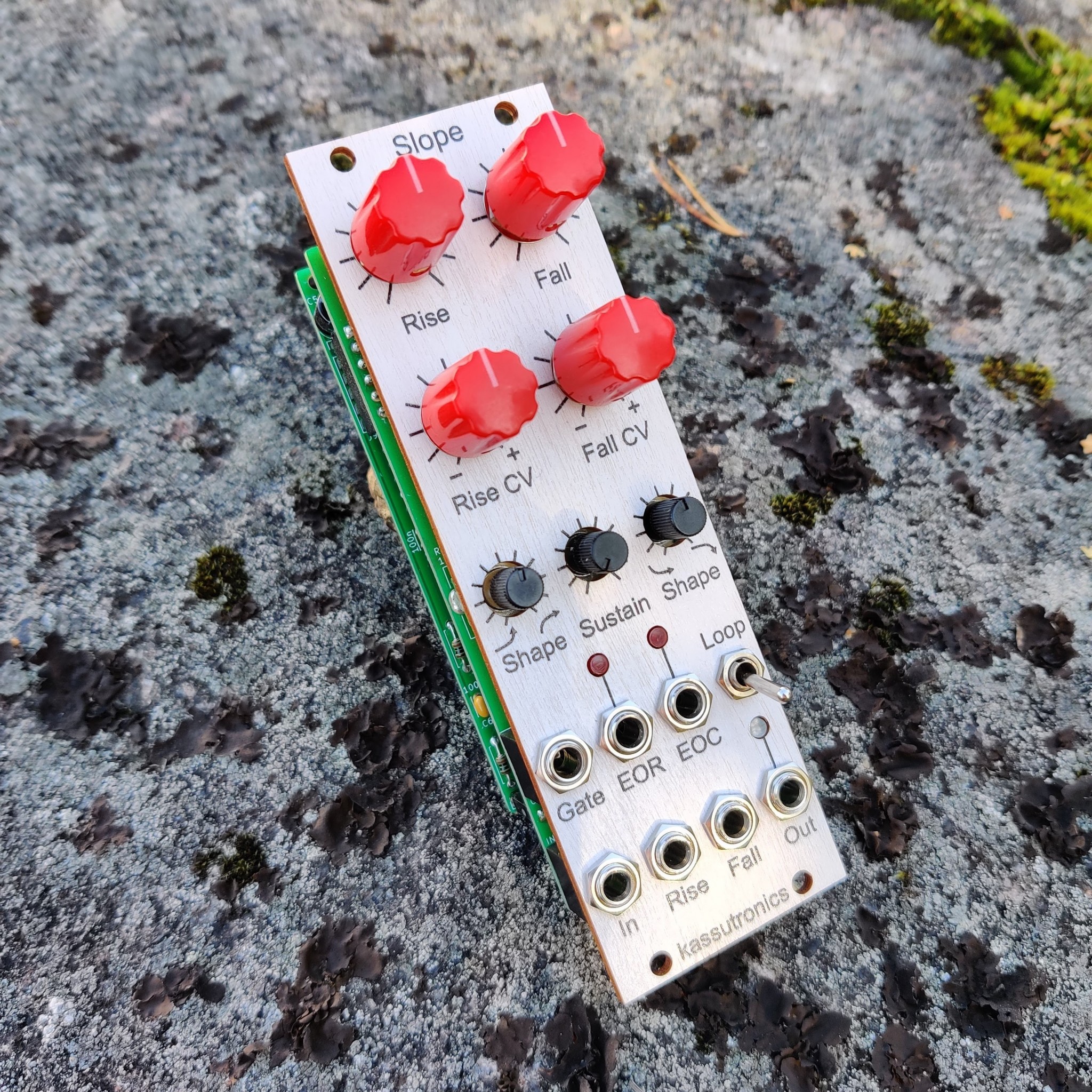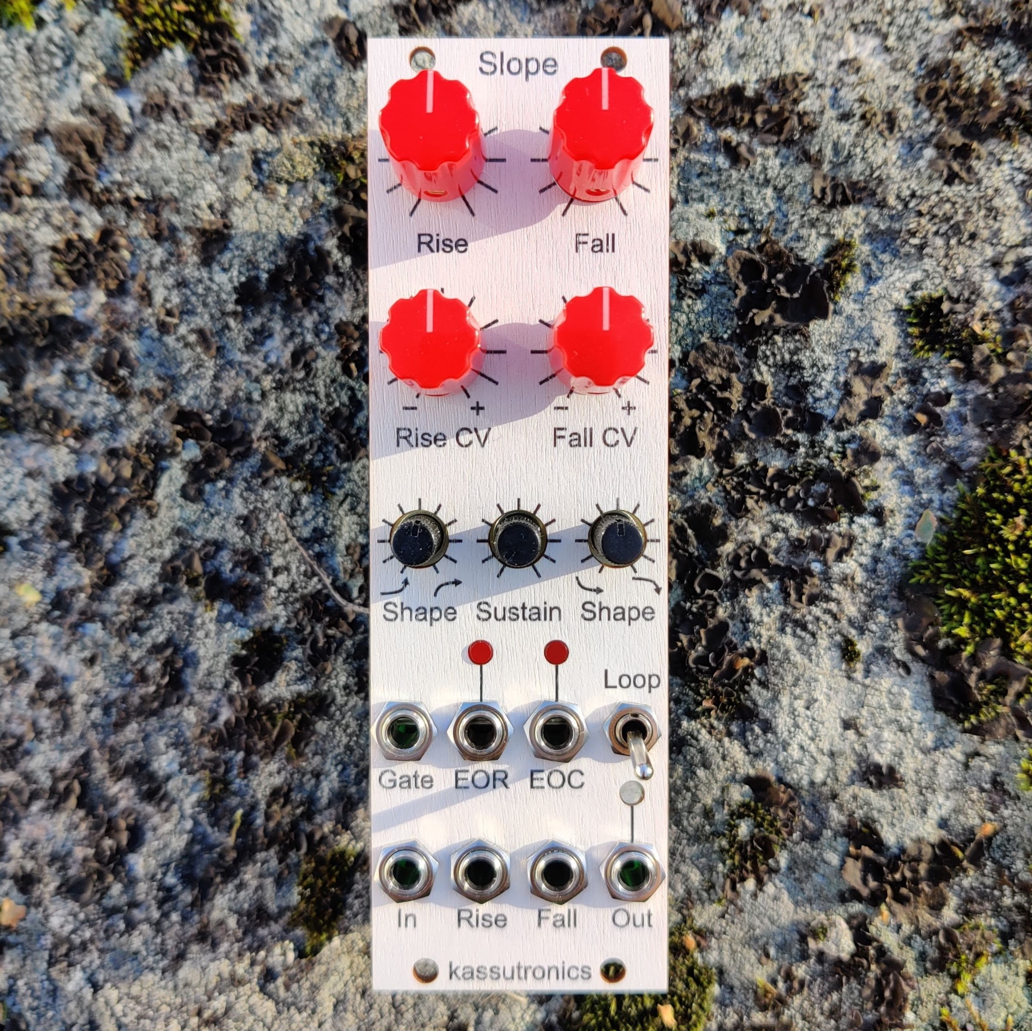 | Controls: | rise and fall time, rise and fall CV amount (attenuverters), rise and fall shape, sustain, loop switch |