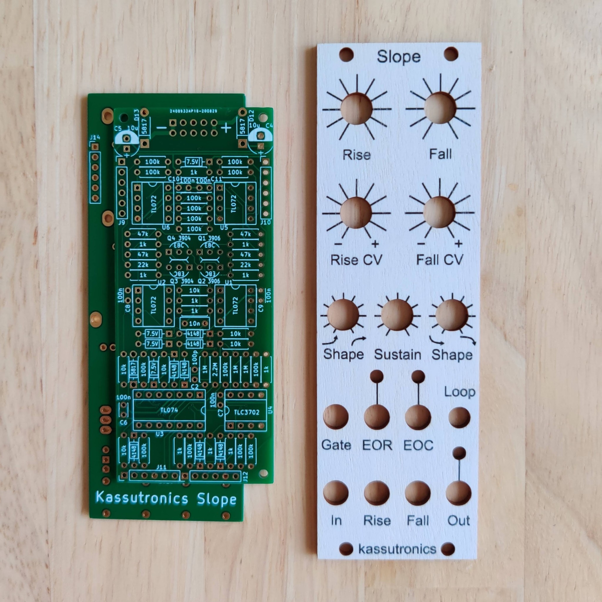 This module is a single slope generator in a compact 8hp Eurorack format, using only through-hole components.